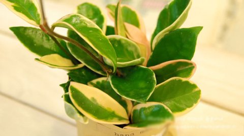 윤이 나는 초록색 잎은 가장자리가 크림색을 띄고 있으며,