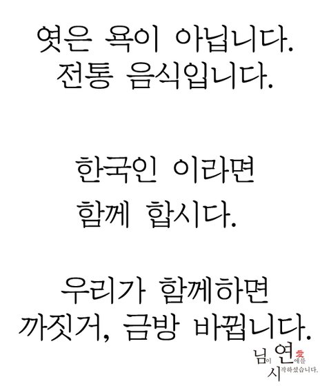 하지만 우리의 작은 노력 하나로 대한민국 전통 엿을 비속어가 아닌 우리 음식 "엿"으로 되돌릴 수 있어엿