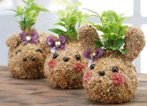 철사로 모양을 만든 뒤 물이끼로 덮어 만든 모스 토피어리라는 건데