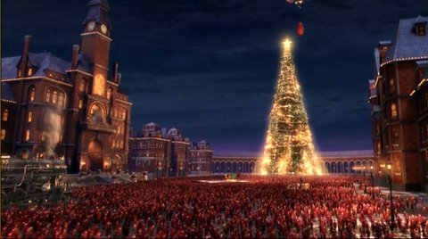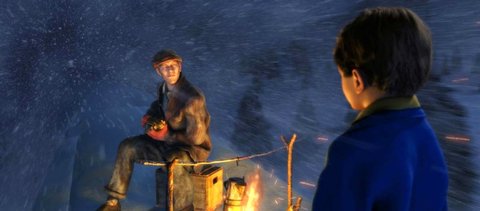 산타마을로 간다는 열차 폴라 익스프레스가 세워지고, 소년은 자신의 파자마 주머니에 들어있던