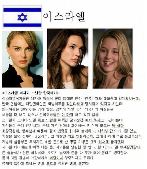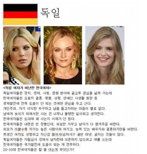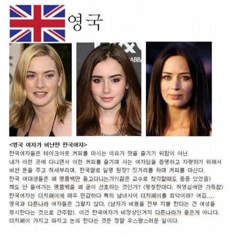 이거 걍 한국남자가 바라보는 한국여자아님ㅋㅋㅋ 딴 나라여자들이랑 비교하면서 까는거네ㅋㅋㅋ