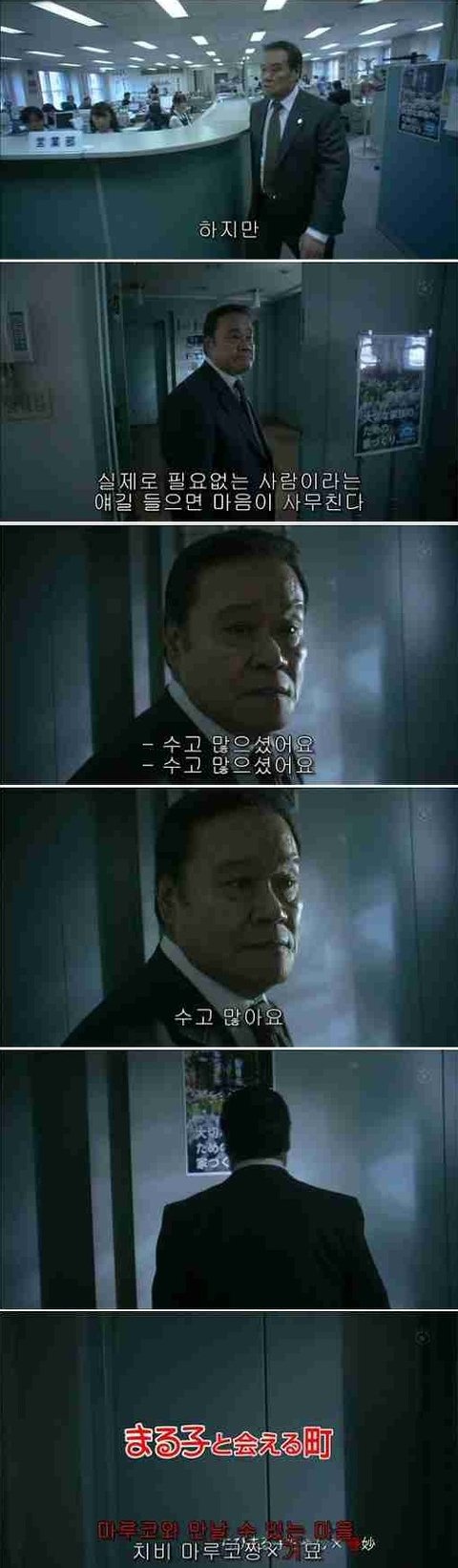 감사하단 인사를 전하며, 사실 이곳에서 계속 살고 싶다하는 남주. 쓸모없는 사람처럼 여겨지는 남주가 원레 살던 곳 보단, 따듯히 맞아주고 정감가는 마루코가 사는 마을이 더 좋다는 남주.