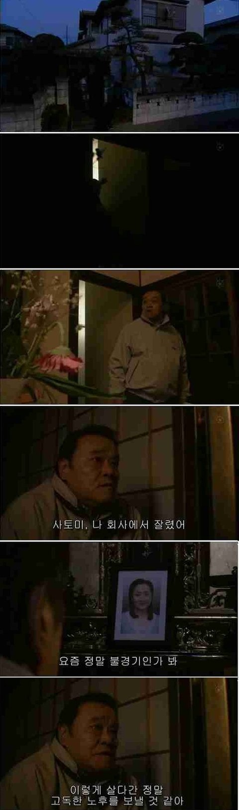 아내의 사진을 보며 회사에 잘리고 이러다간 고독한 노후를 보낼것 같다며 넋두리아닌 넋두리를 하는 남주.