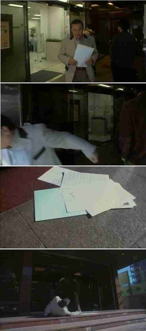 그렇게 쓸쓸히 건물을 나서려는 남주, 그 도중에 어떤 남자와 부딫혀 넘어짐. 하지만 그남자는 남주가 넘어지건 말건 휙하니 지나감.