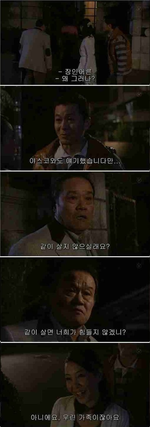 집으로 들어가려는 남주를 잠시 부른, 남주의 사위는 같이 살자고 함.