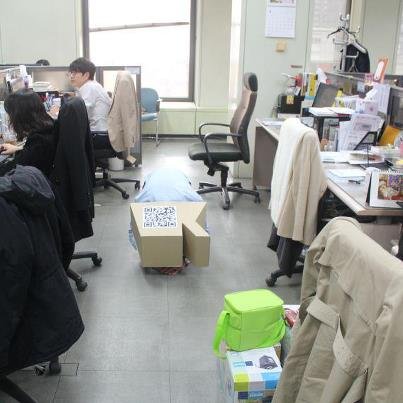 하루에 한분이라도 저를 봐주시고 저희 회사 페이스북에 들어와 준다면 너무나 감사할꺼란 생각에 인턴기간 동안 상자를 쓰고 즐겁게 출퇴근 하였습니다.