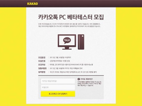 카카오톡 PC의 베타테스터 경쟁률은 무려 21대 1 !!
