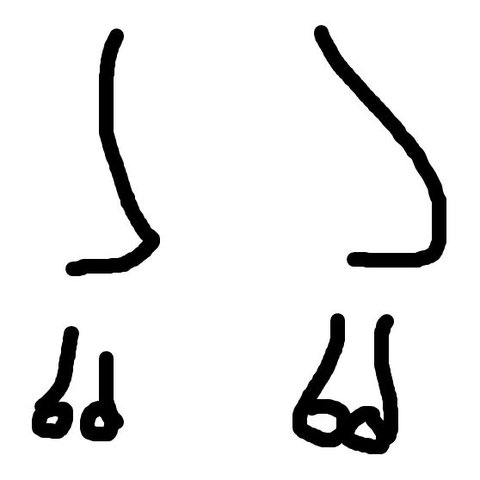 왼쪽위가 친구 코 옆모습, 아래가 친구콧구멍크기고 오른쪽이 저입니다.