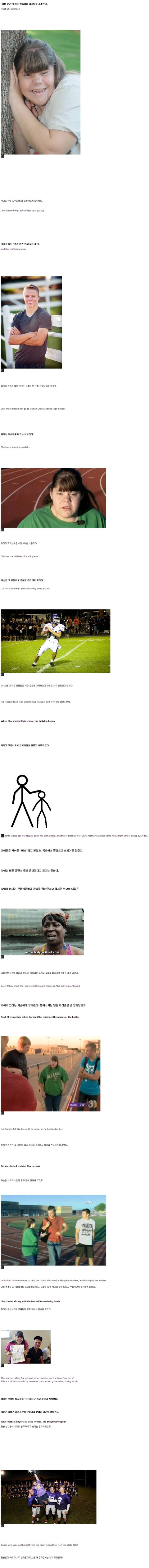 15. 카슨은 챠이의 수업에 갈때 같이 동행해 주었고 다른 풋볼팀 친구들에게도 도와달라고 했다. 그들은 모두 챠이와 같이 다니고 수업시간에 옆자리에 앉았다.