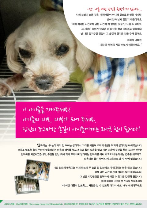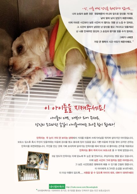 많은 분들이 도와주셨으면 해서 내사랑 바둑이 까페의 허락을 받아