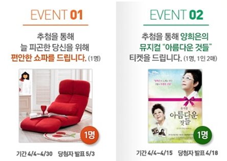 쇼파부터 양희은씨가 출연하는 뮤지컬 티켓을 증정하는 이벤트랍니다.