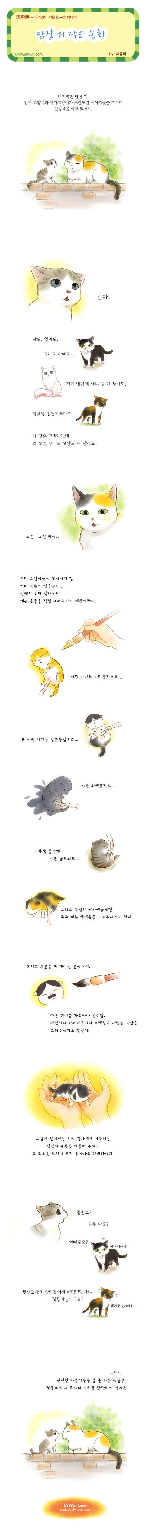 길에서 태어나 형제랑 길건너다 형제가 차에 즉사해서 그 충격에 조금 여리고 소심하지만