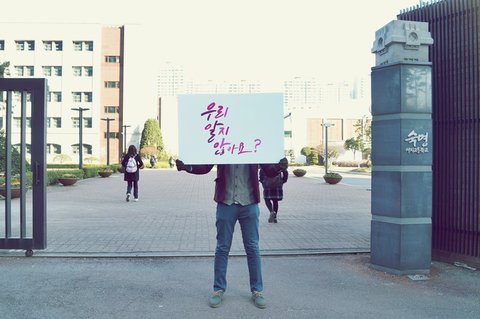 고등학교 앞에서 또 우리 알지 않아요? 라는 피켓을 들고 서있는 훈남!!