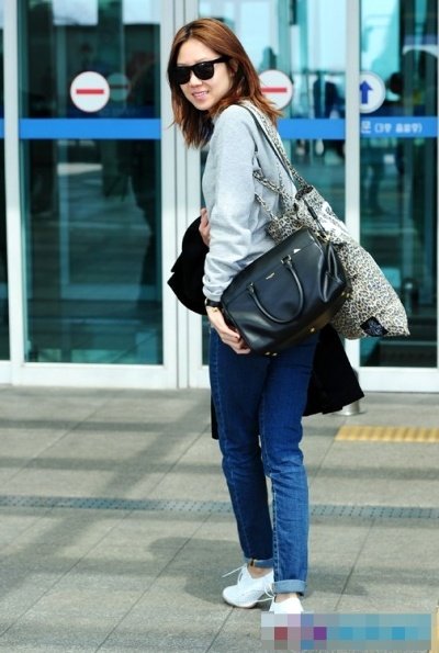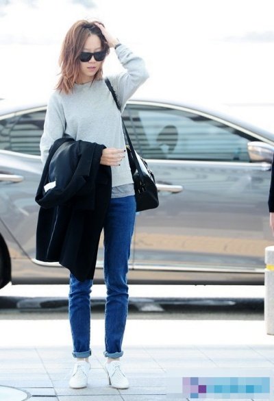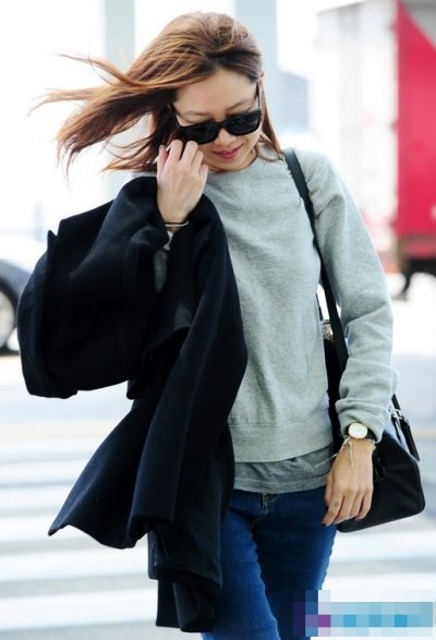 면티에 청바지만 딱 입고 공항에 온 최근 공효진