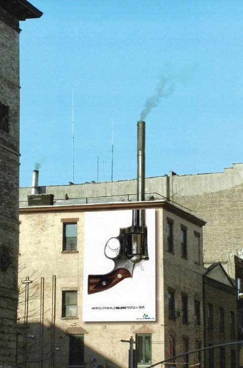 헌해 대기오염으로 6만명이 사망한다는 메시지를 전달하는 옥외 광고