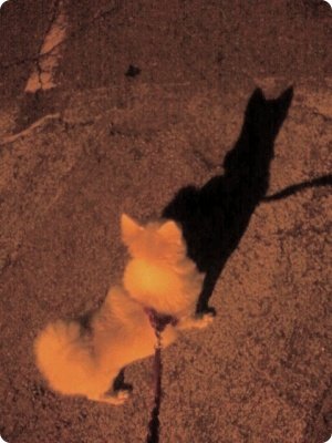 저녁에 산책중 - 자기 그림자 쫓는 꽁이.