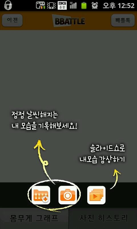 저는 일주일에 한번씩 체중을 기록하는 편인데요. 점점 빠지는 내 모습을 보면 흐뭇하답니당ㅎㅎ 그리고 사진 히스토리에 사진을 올려서 다이어트 전 후의 사진을 감상할 수 있어요ㅎ
