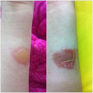 상처가 어떻게 저런 모양이냐고 하셨는데 물이 쏟아지자 마자 옷을 걷었는데 화장실까지 가는동안 시계찼던 부분과 옷 걷으면서 물이 팔꿈치에 묻었던 부분은 물집이 잡히고 다행히 다른 곳은 괜찮네요...