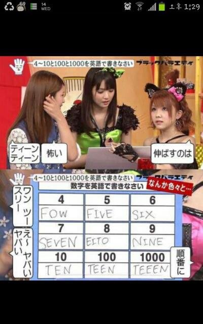 이거 쟤네가 멍청한 것도 이유가 있겠지만 근본적인 원인은 일본 자체에서 쓰는 영어에 문제가 있습니다. 일본의 경우 영어 발음을 가타카나로 표기한 후 그 표기한 가타카나로써 발음을 하게 됩니다. 예를 들어 "Sale" 이란 단어를 봤을때 우리나라의 경우 영어발음 그대로 따 "세일" 이라 발음하지만 일본의 경우 "セール " 세루라 발음합니다. 이유는 일본어의 경우 "ㅔ" 뒤에 "ㅣ" 가 따라오면 "ㅔ" 의 발음을 길게 빼내어 "ㅔㅣ" 발음이 아닌 "ㅔ~" 발음이 되어 "세이루" 가 "세ㅡ루" 로 발음이 되는것입니다. 근본적으로 영어 발음을 가타카나로 표기 후 그 표기된 가타카나를 일본 발음으로 하는 자체에서부터 영어 일본 사이의 갭이 생기는 것입니다. 우리나라완 달리 발음만으로 그 단어의 스펠링을 유추해보기엔 상당히 무리가 있죠. 물론 기본적인 단어도 모르는 쟤네도 멍청한것이 분명하지만 그것만 놓고 일본 아이돌의 지식을 논하기엔 근본적인 문제가 있다는 말입니다. ----------------------------------------------------------- 난 쟤네가 멍청하지 않다고 적은적 없습니다. 그런식으로 따지면 쟤네도 우리 그 누구지 태국에서 똥싸서 삭발한 그룹, 걔네 보고 한국 아이돌은 다 싸.가.지 없다고 일반화 시킨다면 어떨까요? 쟤네가 보고 그렇게 일반화 시키는거랑 우리가 저거 보고 일반화 시키는거랑 뭐가 다르죠? 그리고 그렇게 넷상이라고 반말 하지 마십쇼. 못배운거 티납니다.
