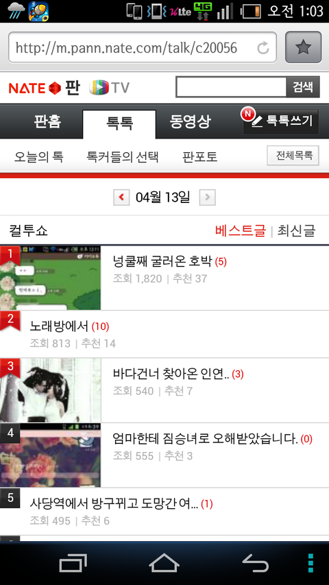 제 톡이 일등이네요 ㅋ
