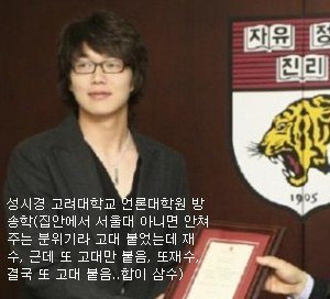 ㅋㅋㅋㅋㅋㅋㅋㅋㅋㅋㅋㅋㅋㅋㅋㅋ그냥보다가 성시경 읽고 개빵터짐 삼수했는데 셋다 고려대야 물론 고려대도 엄청잘간거지만 좀 불쌍하다 ..