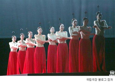 지난 10일부터 국립극장에서 상연되고 있는 국립무용단(예술감독 윤성주)의 신작 '단(壇)'이 논란의 대상이 됐다. 2막 3장 중 붉은 치마를 입은 9명의 여성 무용수들이 2분 정도 상반신 누드 상태로 춤을 추는 모습이 등장한다.