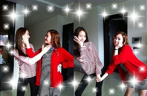 제시카는 기분이 좋아보이나 크리스탈은 언니 제시카의 무게를 견디지 못하는 건가요??ㅋㅋ