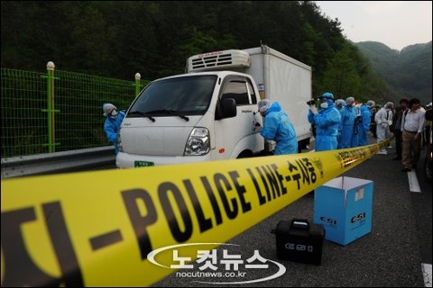 냉동탑차 뒷칸에는 그 둘의 시쳬가 있었고 이게 무슨일인지 묻자