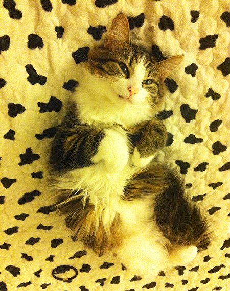머리끈 갖고 놀다가 지쳐서 누운 우유ㅋㅋㅋㅋ