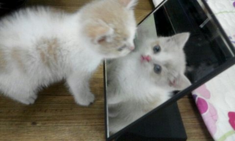 거울 보고 자기 얼굴에 심취해 있는 밍밍이