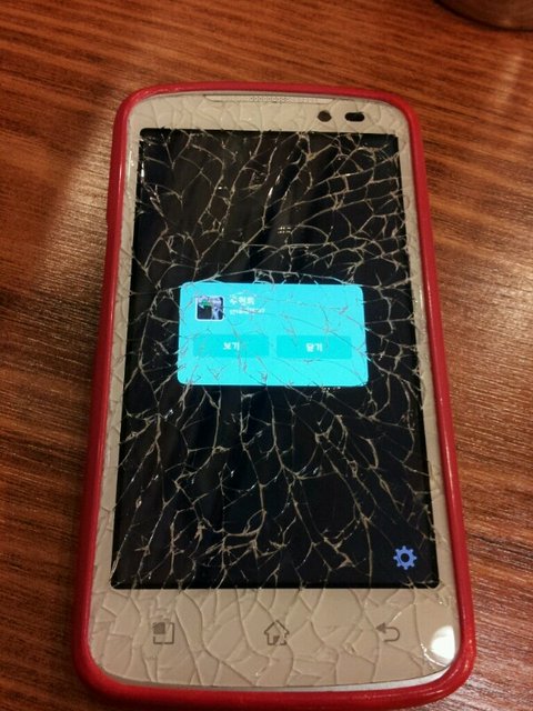 상대방 카톡사진이 너무 충격적이여서 액정이 버티질 못했나봐요 안타깝네요