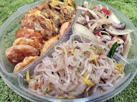 반찬통은 다이소에서 샀어요 / 숙주나물 / 버섯볶음 / 동그랑땡 / 버섯전