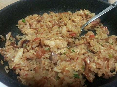 요건 치킨 시켜먹고 ...남은치킨 버리기가 아까워서 치킨이랑 양념으로 만든 볶음밥이에요