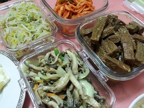 숙주나물 . 무생채 . 버섯볶음.... 메인은 장조림 !!!