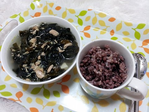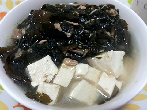 두부 참치 미역국...간은 아주 소량의 소금으로 간 했어요