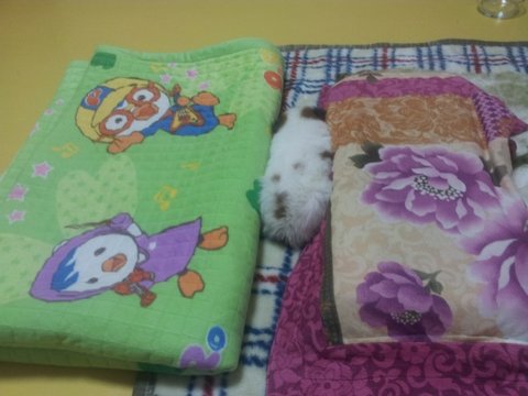 깔깔이를 저렇게 둥글게 놔주면 저 안에 쏙 들어가 자요 ㅋㅋ