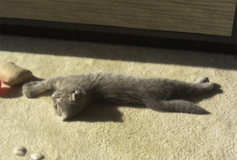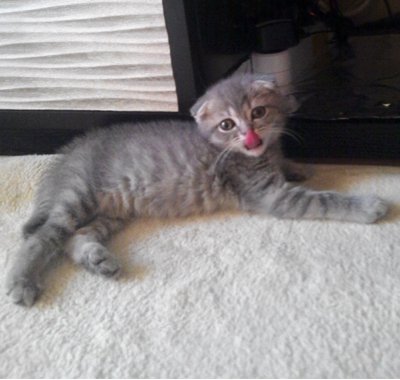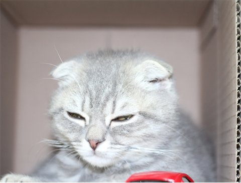 눈은 찌그러지고, 입가의 오동통, 뻗은 수염. 호기심 만땅~