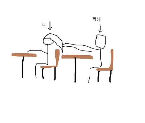 책상을 앞으로 땡겨서 내머리를 모아서 손으로 잡고있음.. 이해 안가실 분들을 위해 그림을 그렷슴..