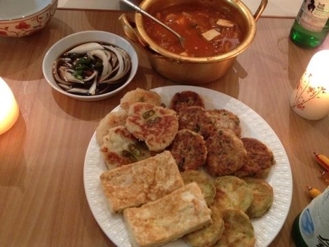 감자전 참치전 호박전 두부부침~그리고 국물이 빠질수 없기에 급 김치찌개도 만들었네용