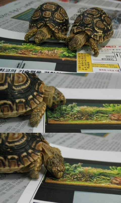 저 레오파드 두마리 키우는데요 .ㅋ 아침에 하품도 하고, 일어나서 집에 가보면 목 쭉빼고 밥 주기 기다리고있는게 너무 귀여워요 ~ㅋ 비록.. 말은 못알아 듣는듯하지만.. 상추,배추,미나리.ㅋㅋ 다 즐겨먹는 거북이 건강하게 자라라 ~ㅋ
