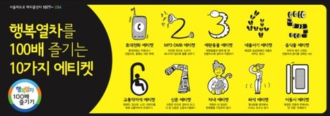 앞으로 이런 에티켓에 더 관심 가져주시고 행복한 지하철을 만들어나갔으면 좋겠습니다