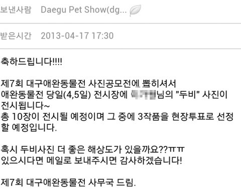 이사진으로 그냥 재미삼아서 대구애완동물전 사진공모전에 출품했는데...