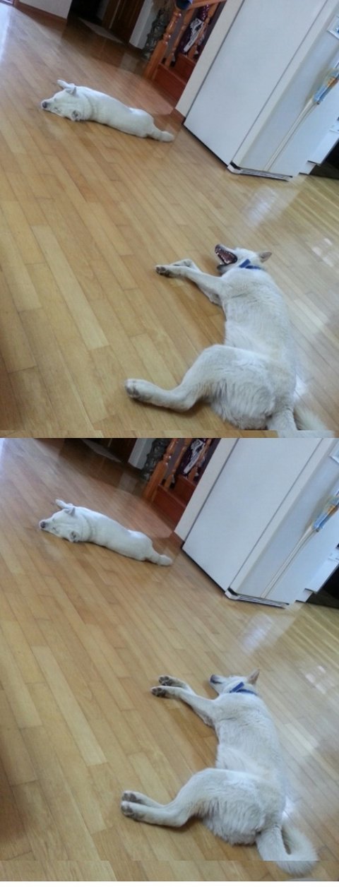 자세히보면 이가비가 두비 발 한쪽을 몸으로 누르고있음.