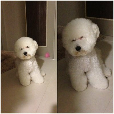 이것은 비숑 썸머컷이라고 하죠? 좀 짧게 미용한 모습이랍니다~