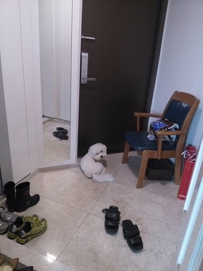 엘리베이터가 작동하는 소리가 들리면, 저렇게 문앞에서 기다린답니다 ^^