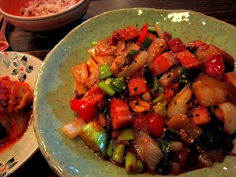 냉장고에 햄자투리가 돌아다녀 그것도 볶아볶아- 참기름을 치덕치덕-