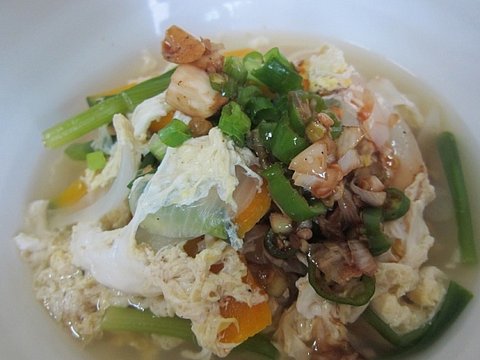 맨처음 끓였던 야채 간장액기스에 햐얗고 뽀얗고 몰캉몰캉한 계란을 투척!
