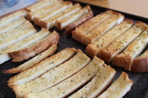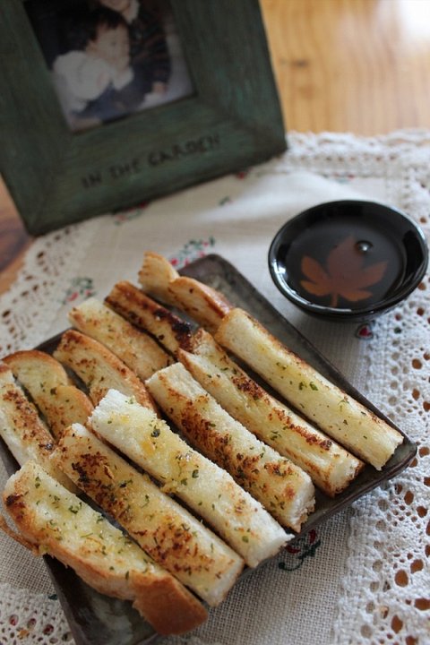 보통 샌드위치 해먹고 겉테두리를 잘라버리는데 그 테두리를 마늘빵 만들어 먹으면 남기지 않고