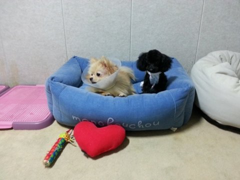 오자마자 모습과 지금 모습 (아파서 넥칼라 중) 이랍니다 ^^ 짜잔~