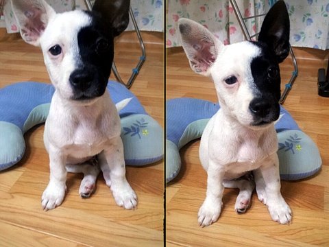 보스턴테리어와 코카스파니엘 사이에서 태어났어요>_<